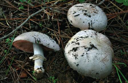 as the mushroom matures, from pale pinkish to brownish grey. Similar color