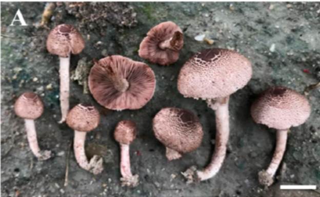 图1 最早描述于泰国的萨莎蒙层蘑菇Hymenagaricus saisamornae(暂拟,该种种加词是以泰国菌物学家Prof. Dr. Saisamorn