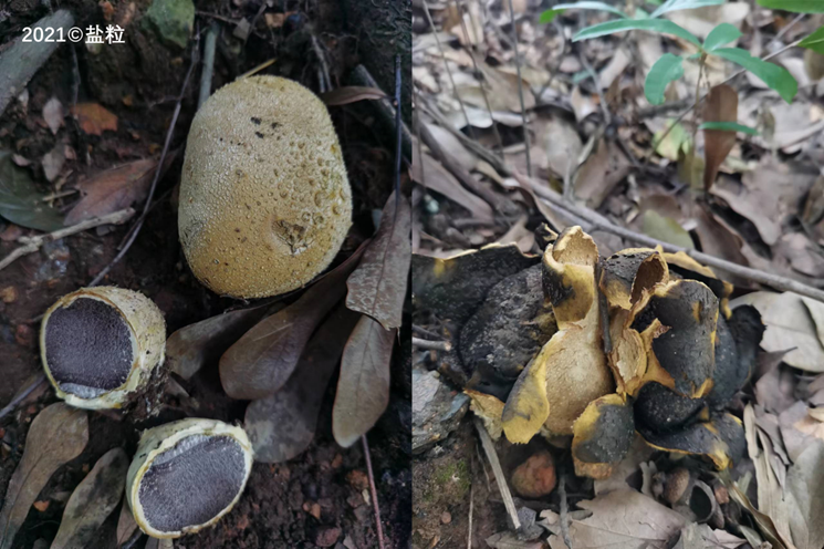 Scleroderma sinnamariense是近缘的,据记载亚洲地区有采食的另一个物种(Amadou M. Ba et al. 2014),区别在于云南硬皮马勃外皮更厚,孢子无网纹。
