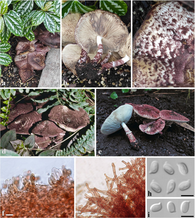 Mystagaricus, a new genus within the core Agaricaceae to accommodate Leucoagaricus brunneolilacinus described from a tropical greenhouse in Hungary, 2025. Ágnes Radnóti, Bálint Dima, Krisztián Halász, Irmgard Krisai-Greilhuber, Gábor M. Kovács & Viktor Papp. Mycological Progress 24(54) https://doi.org/10.1007/s11557-025-02072-5