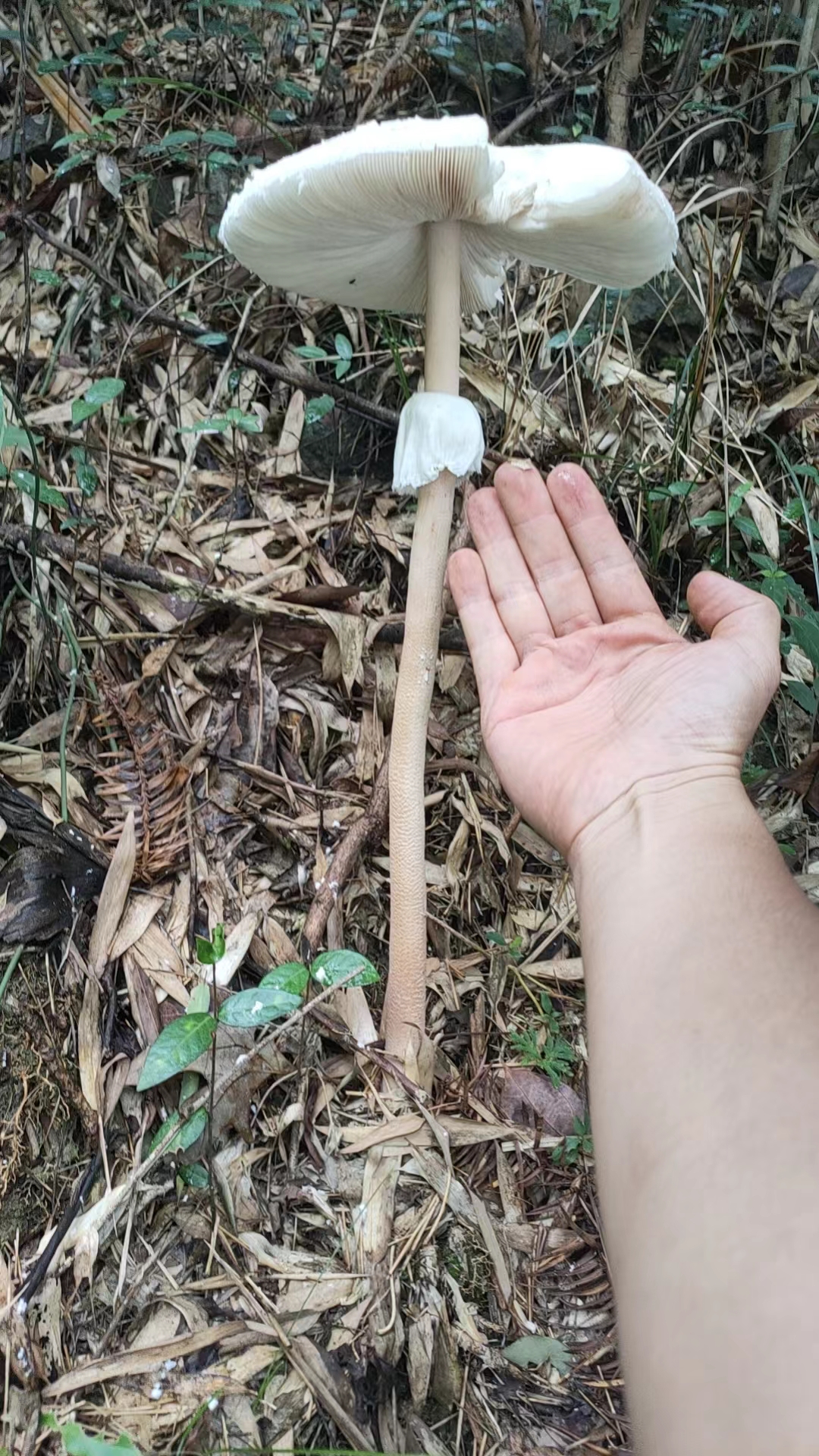 脱皮大环柄菇是在我国南方常见的一种大型伞菌,是大环柄菇属中体型较大的物种,在我国中部和南方地区分布广泛,是常见的野生可食用菌。该物种最标志性的特征是高大的身子和大而下垂的破布状菌环。幼年时,它的菌环连接着菌柄和未张开的菌盖边缘,使整个菌盖呈现“倒水滴形”;成年...... | ![]() |